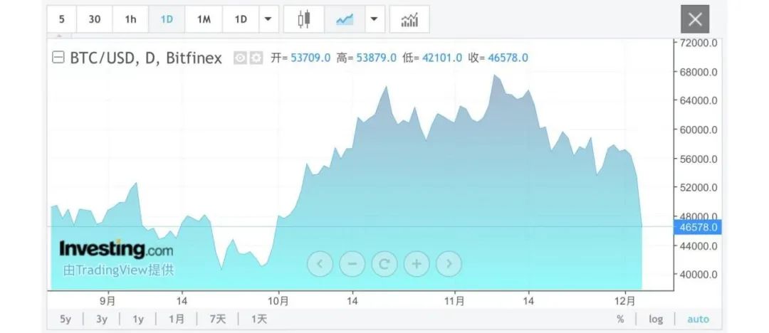 此前比特幣價格在今年11月創下歷史新高,突破至69000美元,加密貨幣總體市值攀升至3萬億美元附近。但衝擊70000美元關口失敗後,比特幣價格走勢明顯乏力。12月1日比特幣最高價格曾觸及59000美元,此後便一路下跌。
